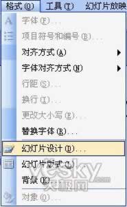 接着选中想要施加模版的页面,单个多个均可。再选择格式菜单,点击其中的“幻灯片设计”选项,便会在右边出现幻灯片设计窗口。