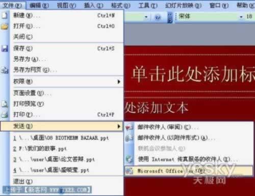 打开需要编辑的PPT,选择文件菜单,点击其中的“发送”选项,并选择“Microsoft office Word”。