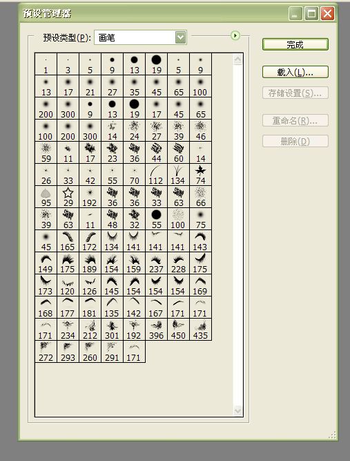 5、如何寻找笔刷,这是刚开始用笔刷的亲们,经常遇到的问题,载入笔刷后,在画笔里增加的笔刷会有编号,你要么记住这些号码,要么打开画笔栏往下拉,可以看到前面的小图标都有笔刷的缩略图,仔细寻找就可以找的到。