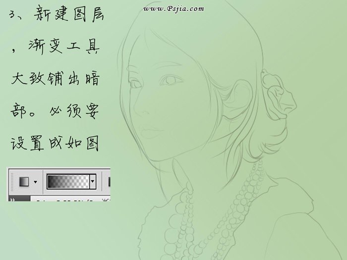 3、新建一个图层,用肩膀工具大致铺出暗部。渐变颜色设置如下图。