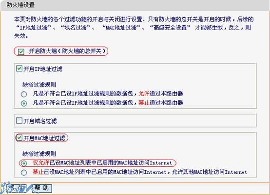 大家都知道,MAC地址过滤是用于通过MAC地址来设置内网主机对外网的访问权限,而在开启MAC地址过滤功能时必须要开启防火墙总开关,并明确MAC地址过滤的缺省过滤规则。下面,我将介绍具体的设置方法。