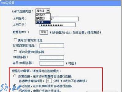 上网频繁掉线还可能是对应连接模式设置有误。在路由器的管理界面中,选择左侧菜单里“网络参数”中的“WAN口设置”选项。选择“对应连接模式”中的“按需连接”选项,把“自动断线等待时间”设为“0分钟”,不自动断线。