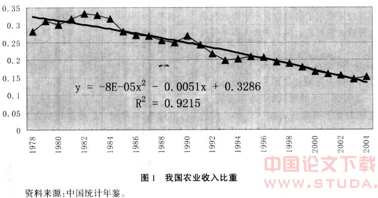 改革开放以来,我国的农业收入比重呈现下降趋势(见图1),即