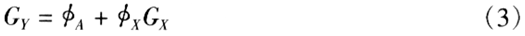 其中φA和φX为农业和非农业部门的收入份额,GA和GX为农村和非农业收入的基尼系数,而且φA+φX=1;其中非农业的收入份额可以分解为资本和劳动份额: