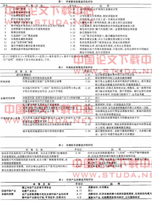 2.1对现行环保政策适用性的评价(见表1、2…34 5)