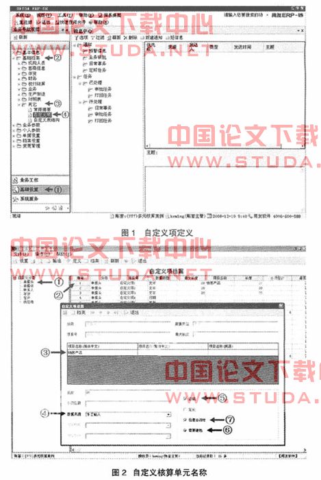 进入企业平台后(图1),通过①基础设置——②基础档案——③其它——④自定义项,打开自定义核算单元窗口。