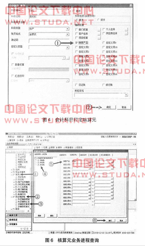 首先将需要核算的业务对象定义为“核算元”。对核算元的业务过程核算的原理是通过一组反应业务进程的会计科目的核算,提供以核算元为信息汇集点的相关科目查询,以掌握业务(“核算元”)的业务进程状态。比如,以销售的产品为核算元,销售的业务过程包括采购、库存、销售、成本、支付费用、缴纳增值税、应收、应付等环节,在用友U8ERP-871软件中,可以用以下四个步骤完成核算设置及核算。