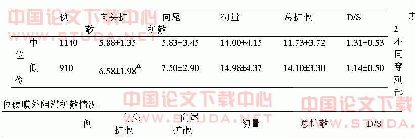 表1 中位与低位穿刺时硬膜外阻滞扩散情况