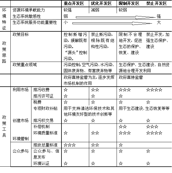 注:☆的个数表示环境标准在四类主体功能区中的相对高低。