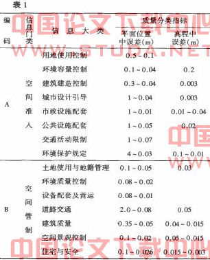 从表可确定出数字城市空间管治各种息信质量需求及数据采集所适宜的必要精度方法等级。
